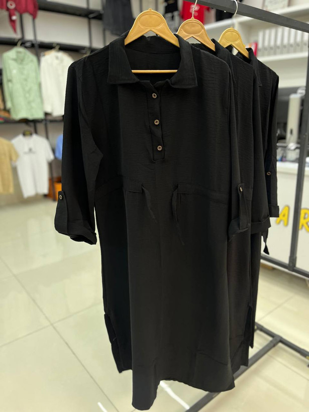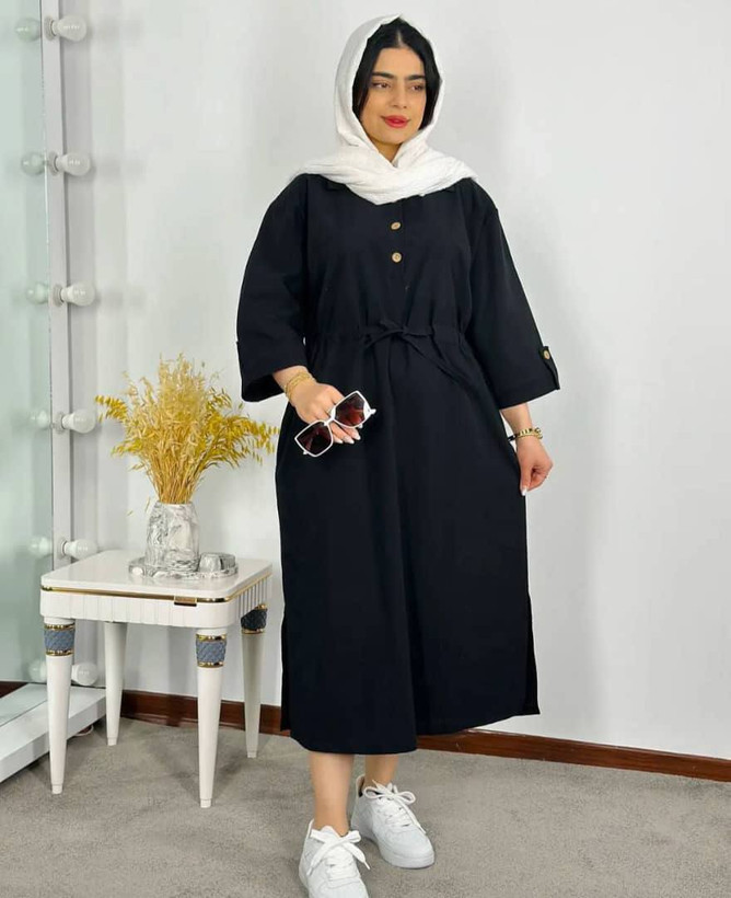مانتو بلند یقه سه دکمه کمربندار🌸🌸